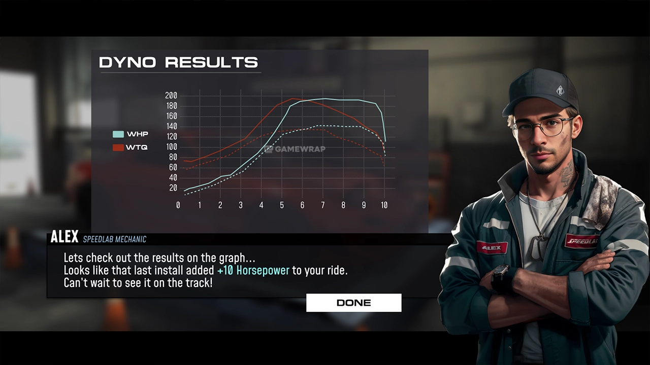 - Performance tune your car at specialty garages and get it ready for the next race.