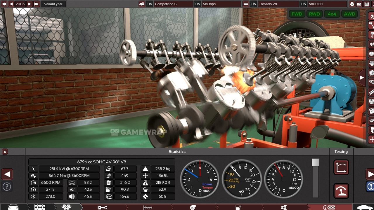 Design the perfect engine for your car; whether it is a large, powerful V12 or a small, efficient inline-3, nearly all common engine layouts are possible!