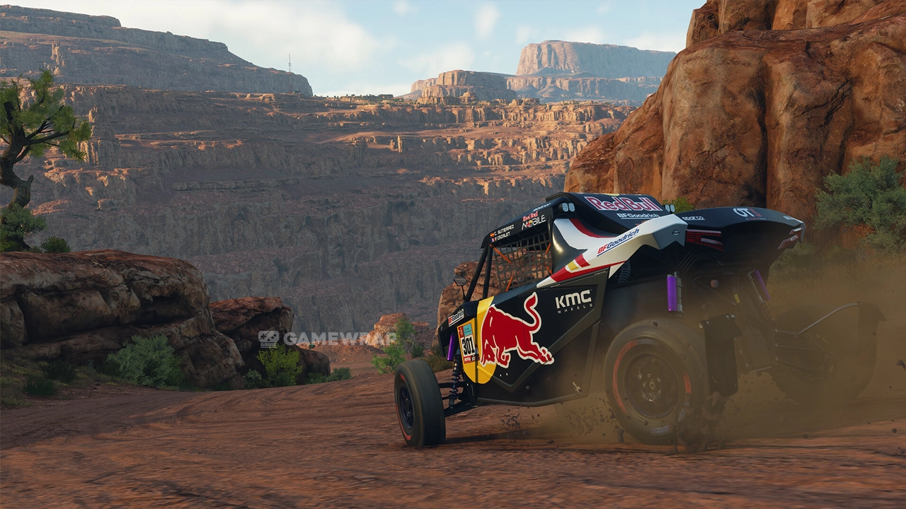 Explore landscapes inspired by iconic North American landmarks, from the Grand Canyon to the Nevada Desert and Yellowstone, in both Rally Raid competitions and Free Roam mode, throughout a 256 km2 map size.