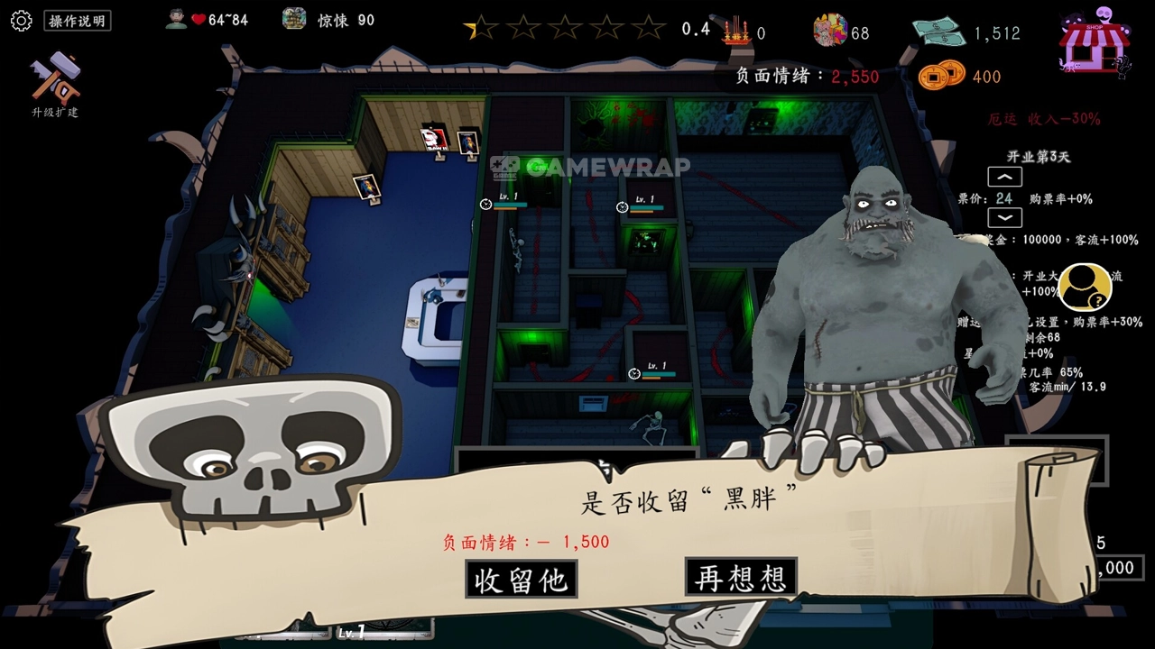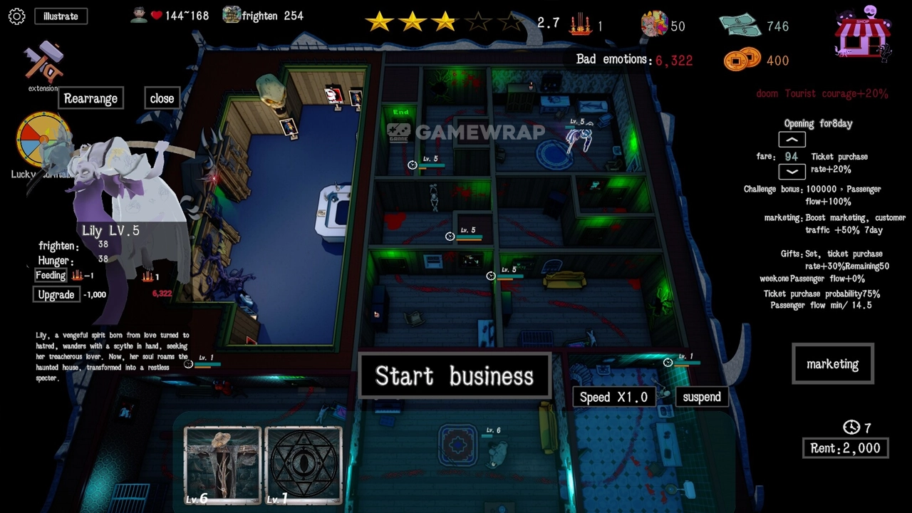 As the game progresses, visitors will become increasingly braver, so ensuring that the haunted house is not conquered by visitors is your biggest challenge.