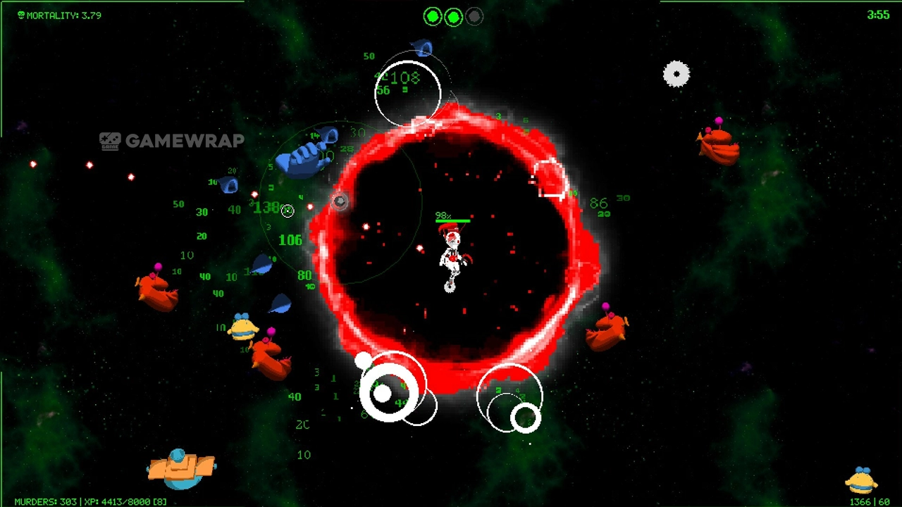 Survive hordes of nightmarish creatures. This game does not favor passive builds and will require you to stay on your toes, weaving through enemies and incoming attacks, while collecting resources and upgrades when and where you can. Modify your runs with limited elements of roguelike progression.