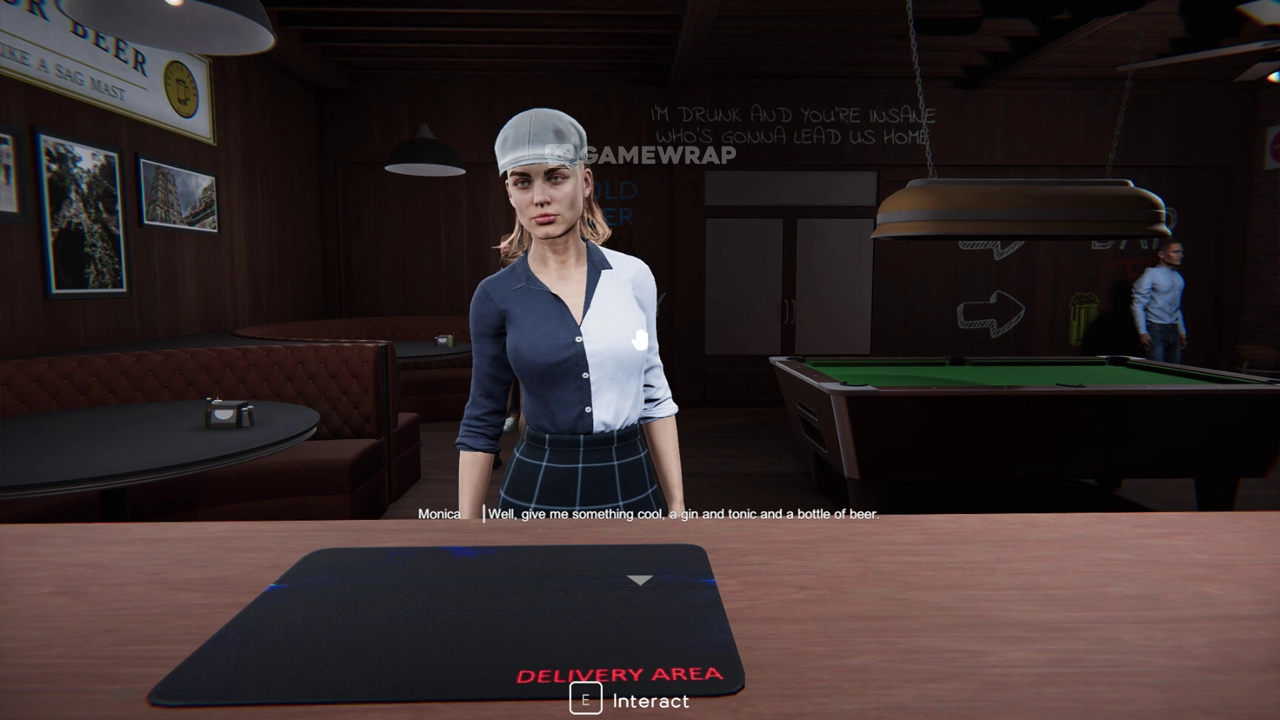 Gameplay: The game mixes the gameplay of a walking simulator with a bar simulation game.