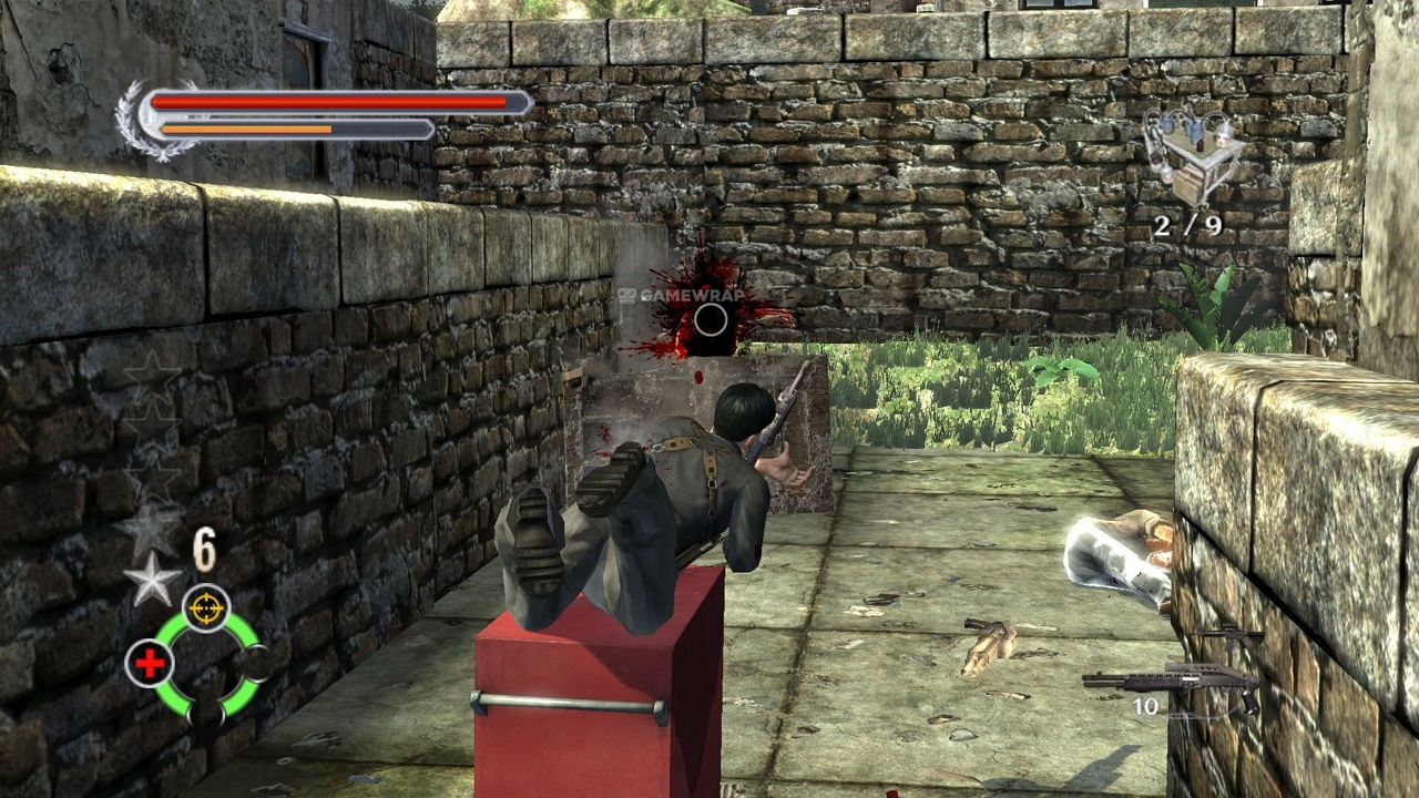 Environmental interaction is a major component, with players able to slide down railings, swing from chandeliers, and use other objects to their advantage in firefights.