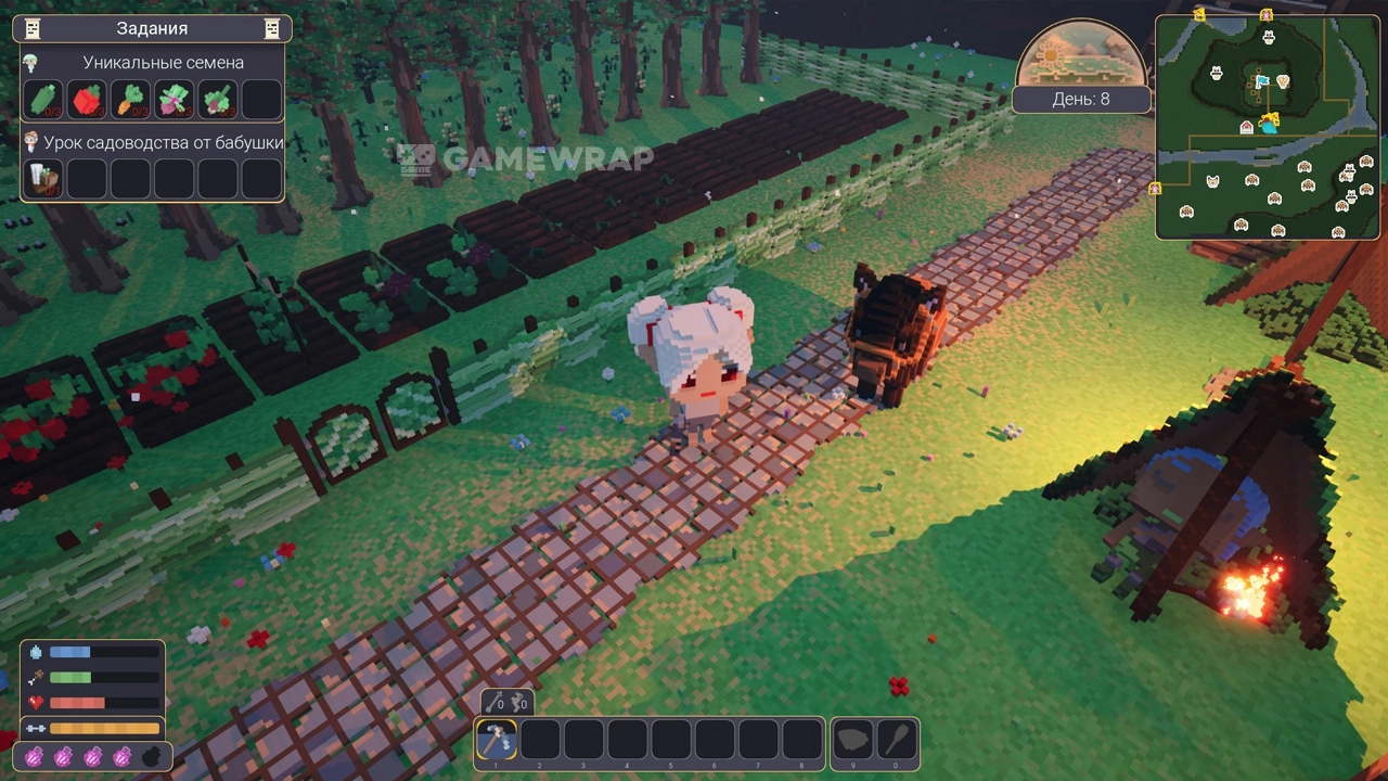 Make your garden! This magical world has many types of unique plants! Dig a hole and start planting to shape your garden as you see fit! Learn how to extract seeds with the locals and never go hungry.