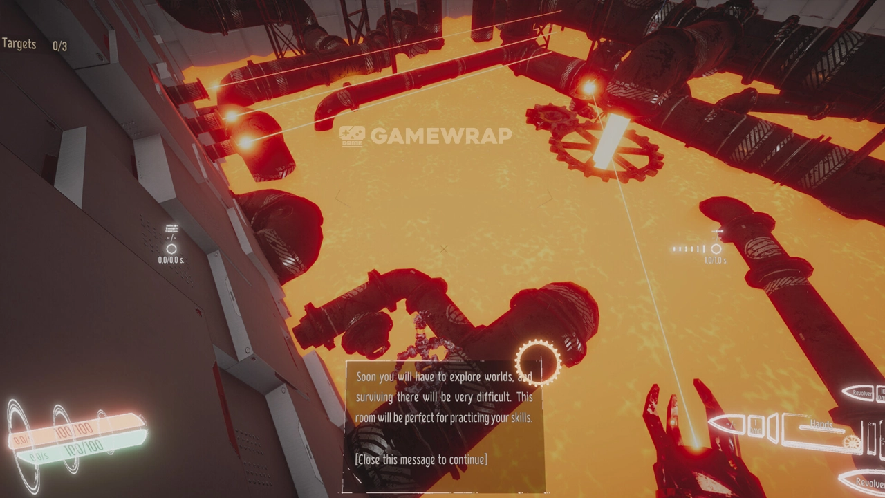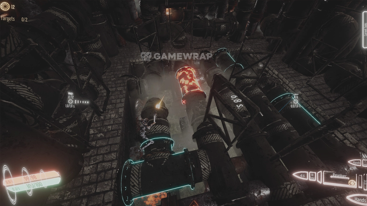 Collect resources like energy capsules and weapons while exploring. These resources are crucial for survival and progression, as your robot character can be destroyed and replaced, but resources are limited.